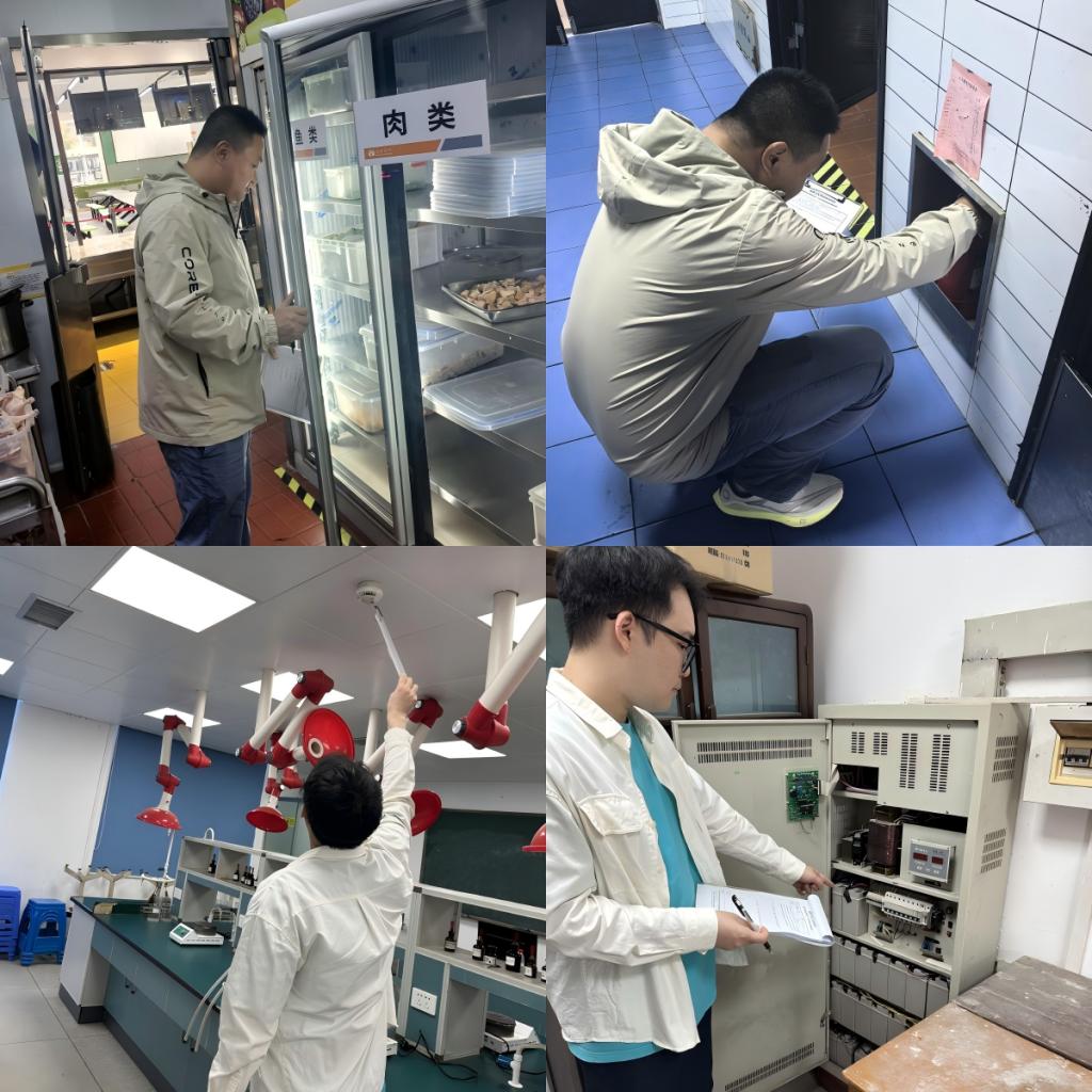 检查组围绕冬季校园安全特点,结合学期末及寒假前后关键节点,重点对消防安全、实训(验)室安全、食品安全、宿舍安全及校园周边环境等开展全面排查。具体包括:电器设备运行及线路安全情况、实训(验)危化品储存、实训(验)废弃物处置规范、食堂及商铺用火用电用气安全及食材管理、学生宿舍违规电器使用、消防通道堵塞等情况、校内施工场地围挡、警示标志设置等安全防护措施。