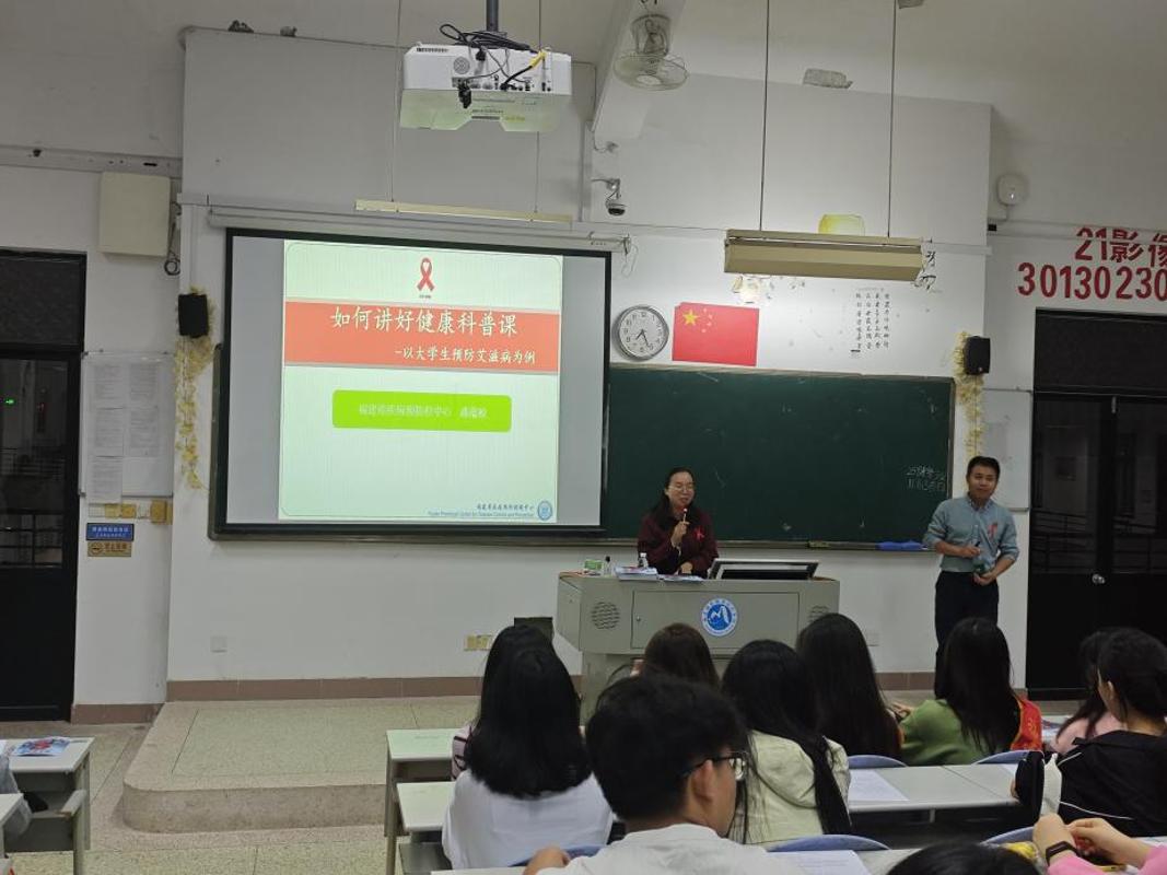 为提升健康科普传播实效,筑牢大学生艾滋病防治防线,11月6日,学院特邀福建省疾病预防控制中心副主任医师、福建省医学会健康科普讲师潘蕴蛟,开展“如何讲好健康科普课——以大学生预防艾滋病为例”专题讲座。活动由校红十字会联合公共卫生与健康管理学院主办,公共卫生管理教研室教师、防艾大使代表、学校师生代表共同参加此次讲座。