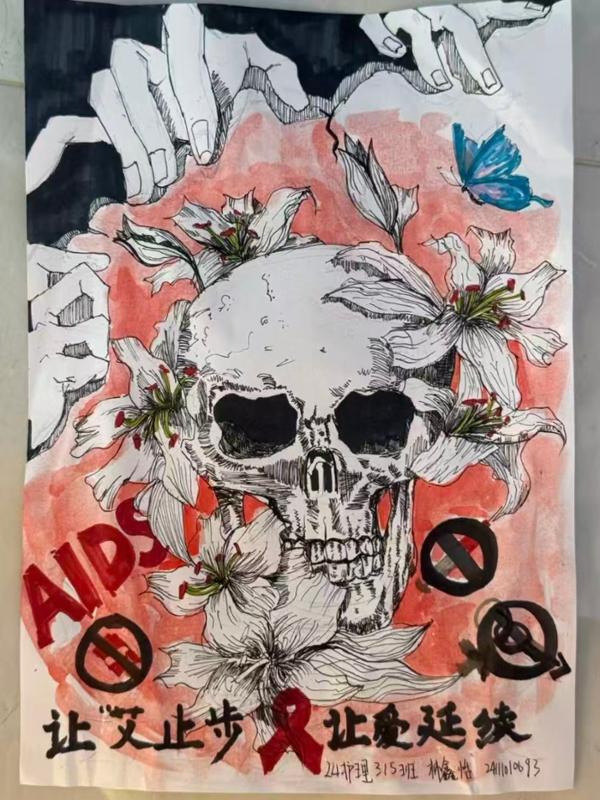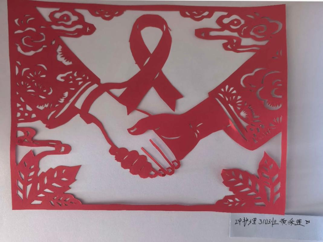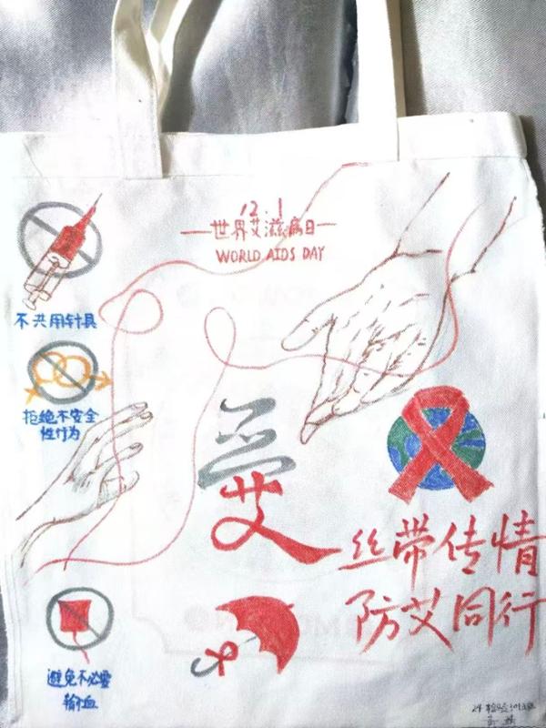 该活动自启动以来广受同学们关注与响应,大家围绕“防艾”主题发挥创意,将敬畏生命、追求健康、倡导平等的理念融入创作,作品涵盖手绘帆布包、剪纸、超轻粘土、书签等类别:手绘帆布包传递科学防艾认知,剪纸勾勒同龄人携手抗艾画面,超轻粘土寄托无“艾”期许,书签搭配温情标语并标注防治知识,让科普融入日常。每一件作品构思精巧、寓意深刻,既显扎实手工功底,更传递拒绝歧视、关爱感染者的人文关怀,让防艾理念深入人心;评审阶段,活动相关负责人组成的评审团通过线上平台,从主题契合度、创意、艺术表现力、传播价值等维度严格评审,最终评选出一、二、三等奖。
