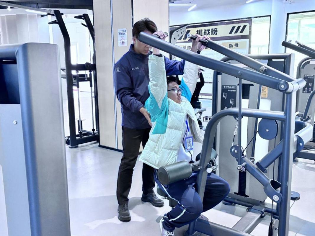 在师生运动健康促进中心,活力满满的体质测量与力量训练体验点燃了同学们的运动热情。志愿者们指导大家完成肺活量测试、柔韧性评估等基础体质检测项目,结合检测结果制定个性化运动建议;随后的力量训练体验中,同学们在专业教练的示范下,尝试使用训练器械,学习科学运动方法,既感受到了运动的乐趣,也树立了 “科学运动、强健体魄” 的健康理念。