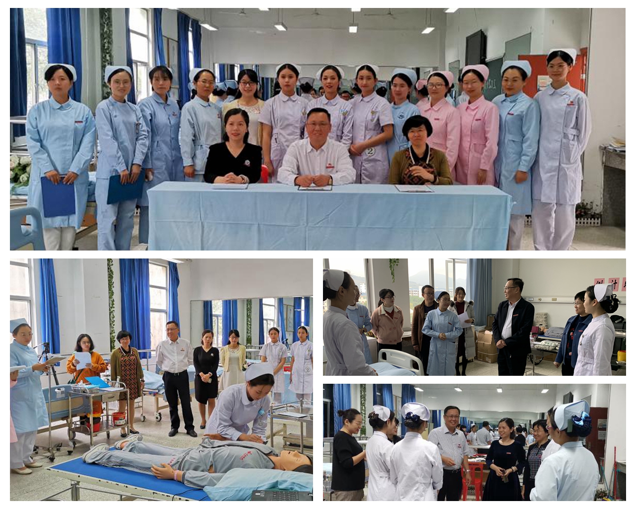 学校领导高度重视此次大赛,多次莅临护理系指导培训工作,亲切慰问团队师生,并及时解决训练中的各种问题,为备赛工作保驾护航,强大的后盾力量使团队师生能全身心投入训练中。