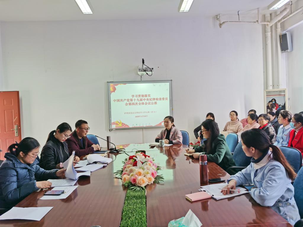 2020年1月16日,护理系党总支理论学习中心组召开扩大会议,学习中国共产党第十九届中央纪律检查委员会第四次全体会议公报精神,会议由护理系党总支副书记林桂松主持,系部全体教职工参加了会议。