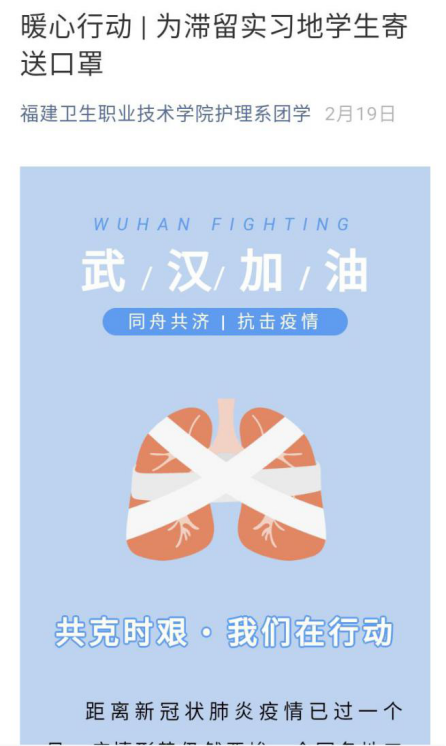 在这次抗击疫情过程中,社会各界积极履行社会责任,为抗击新型冠状病毒疫情贡献着力量。我校不仅有近百名优秀校友奔赴武汉防疫一线发扬了护理工作者的南丁格尔提灯精神,我系两位教师家属也奔赴武汉防疫一线彰显了医者的使命与担当。