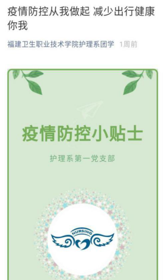 为增进广大师生对防控知识与政策的了解,提高科学防控能力。护理系党总支组织广大师生开展一系列疫情防控线上学习活动,并运用学习强国、系部微信公众号平台、QQ群等在师生中普及新型冠状病毒肺炎疫情防控的知识和相关法律知识,提高师生自我防护意识和法律意识。学习党中央、省委、省委教育工委以及学院关于疫情防控工作的相关决策部署,动员广大师生用实际行动为疫情防控工作贡献力量,同时做到不信谣不传谣。