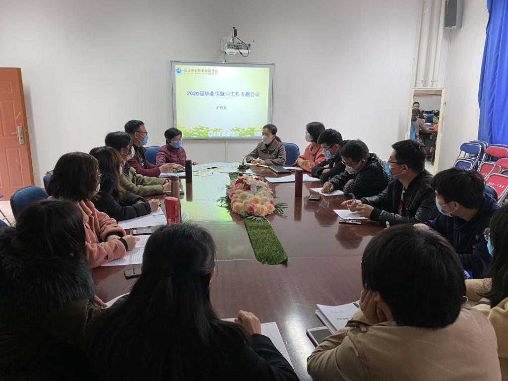 4月2日,护理系在系部301会议室召开2020届毕业生就业工作专题会议,会议由谢涛书记主持,龚海蓉副主任、林桂松副书记、护理系专业各负责人以及辅导员参加了会议。