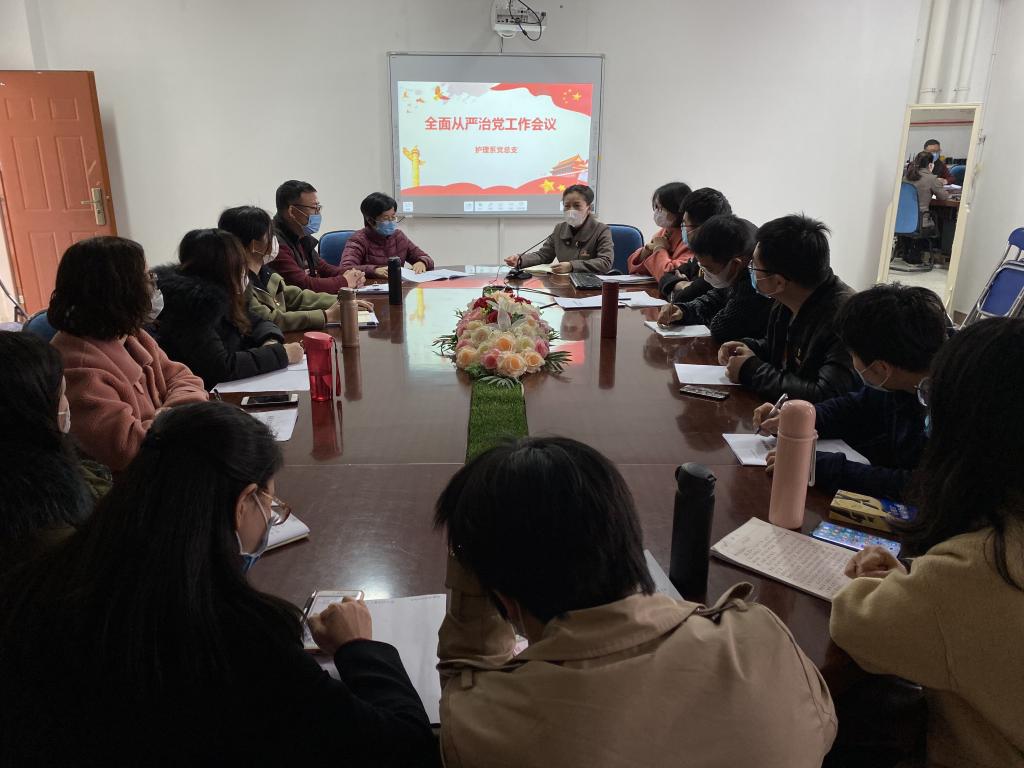 4月2日,护理系党总支通过线上线下结合的形式,召开全面从严治党会议,会议由护理系党总支谢涛书记主持。