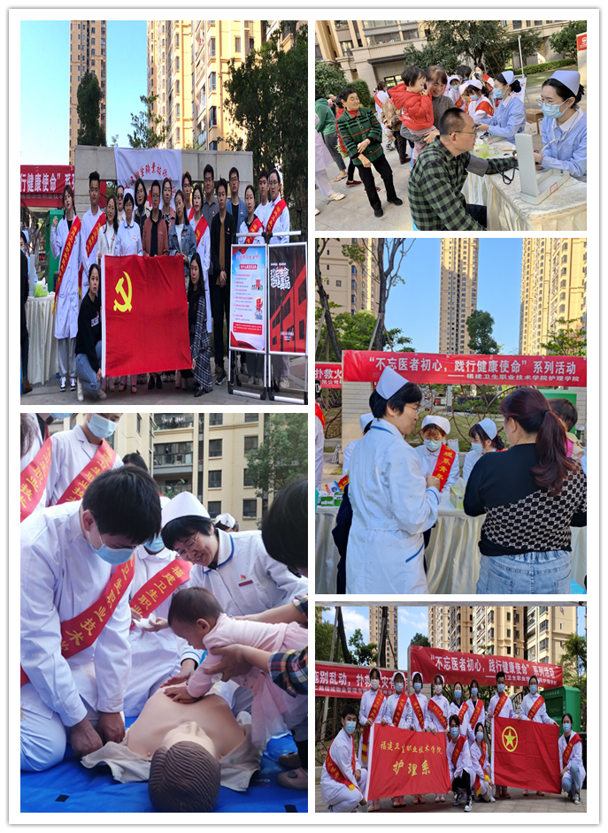 为积极响应学院2020年职业教育活动周的号召与要求, 11月12日上午,福建卫生职业技术学院护理学院在中铁城开展了“不忘医者初心,践行健康使命”义诊活动。护理学院党总支书记谢涛、副书记林桂松、红十字会成员及入党积极分子参加此次义诊。
