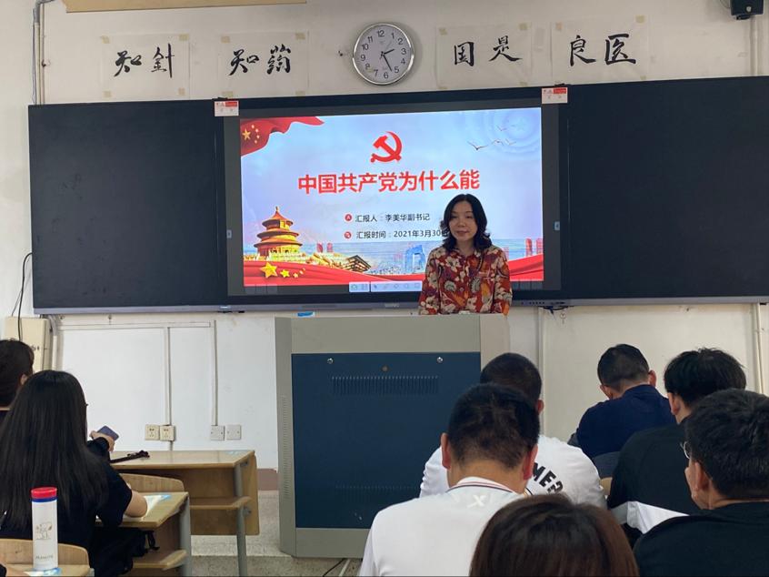 在中国共产党迎来百年华诞之际,为落实好习近平总书记在党史学习教育动员大会上的重要讲话精神,在全校广泛开展党史宣传教育,普及党史知识,推动党史学习教育深入群众、深入基层、深入人心,引导青年学生强化使命担当、坚定理想信念、厚植家国情怀,3月29日,校党委副书记李美华走进联系班级,围绕“中国共产党为什么能”为同学们上开学思政第一课。
