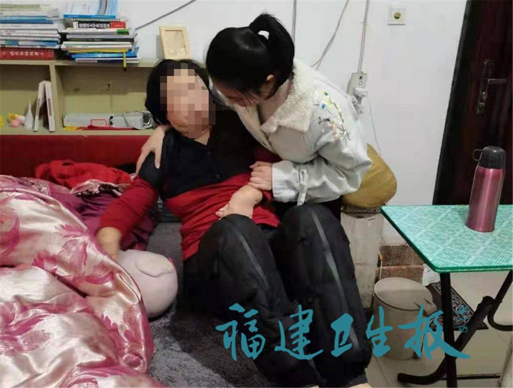 为了更好地照顾妈妈,王林慧特意报考福建卫生职业学院学习护理专业,还把母亲接到学校附近,每天早早起床,赶在学校上课之前,扶妈妈起来,给她穿衣、梳头、洗脸、刷牙、倒水喂药、买早饭。一放学,王林慧从食堂打了饭,匆匆往家赶。一到家,和妈妈一起吃过饭,收拾妥当,给妈妈按摩后,再拿出课本学习。