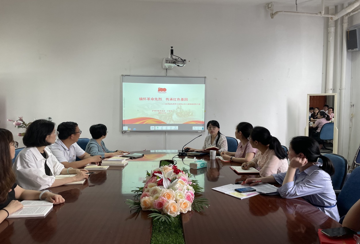 2021年5月13日,护理学院党总支在护理学院会议室开展“缅怀革命先烈 传承红色基因”——从革命先烈李大钊同志身上汲取前进的力量专题党课,本次党课由护理学院副院长王宪宁主讲。