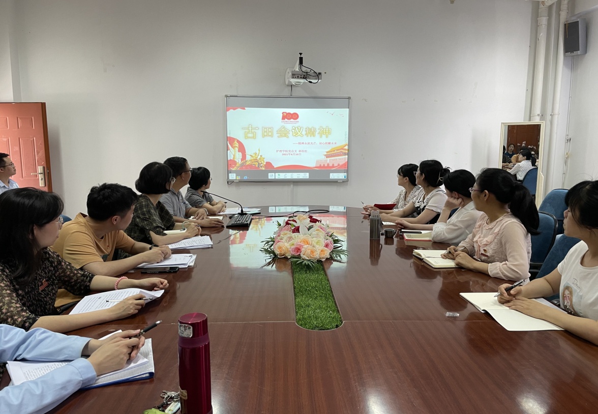 为继续深入学习贯彻习近平总书记在党史学习教育动员大会上的重要讲话,全面开展党史学习教育,引导广大党员干部学史明理、学士增信、学史崇德、学史力行,2021年6月10日,护理学院党总支在护理学院会议室开展学习《古田会议精神》专题党课,本次党课由护理学院党总支副书记林桂松主讲。