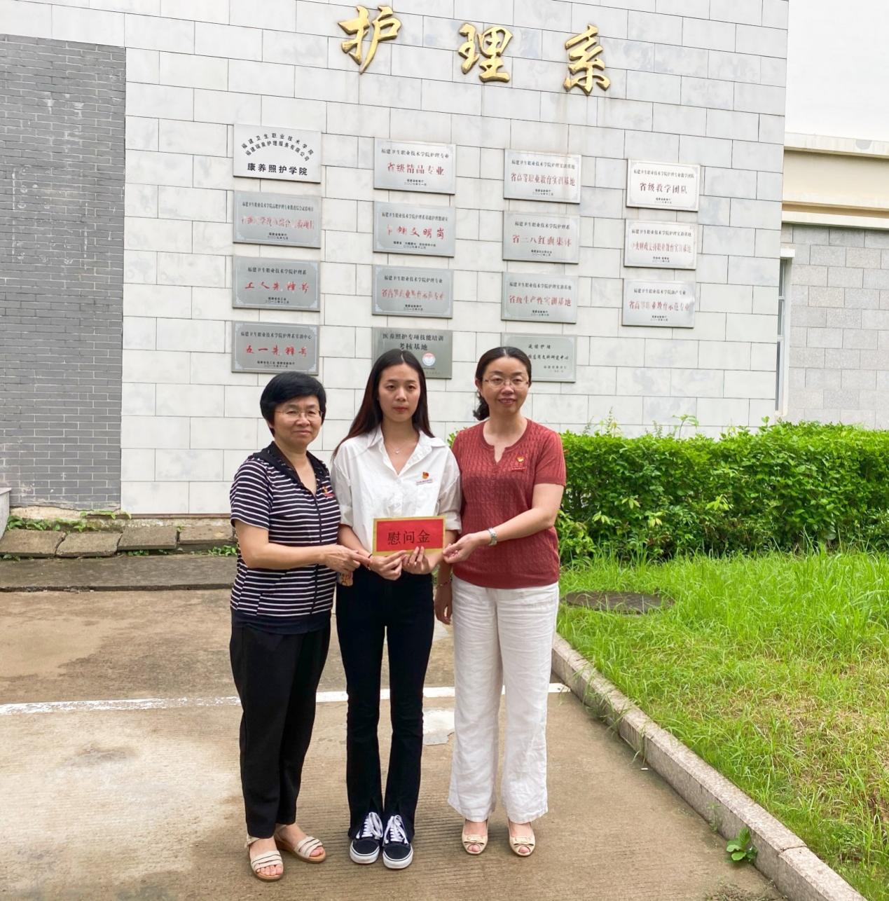 在中国共产党100周年华诞来临之际,为表达学校党委对党员的关心关爱,6月28日,副校长黄铭珊携带慰问金走访慰问了家庭生活困难学生党员,学生工作部、护理学院相关部门负责人陪同慰问。