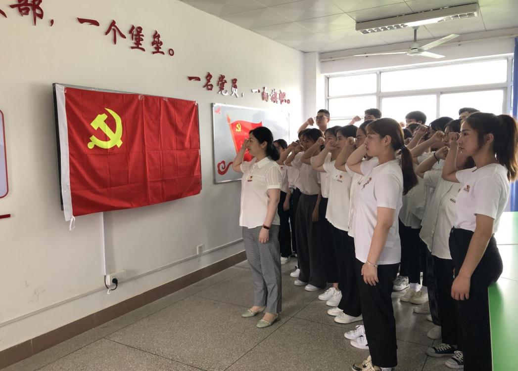 为迎接党的生日,赓续共产党人精神血脉,护理学院第二党支部组织学生预备党员开展庆祝中国共产党成立100周年系列活动之重温入党誓词。2021年7月6日,护理学院第二党支部书记双带头人洪霞同志,带领全体预备党员面向党旗庄严宣誓,重温入党誓词。