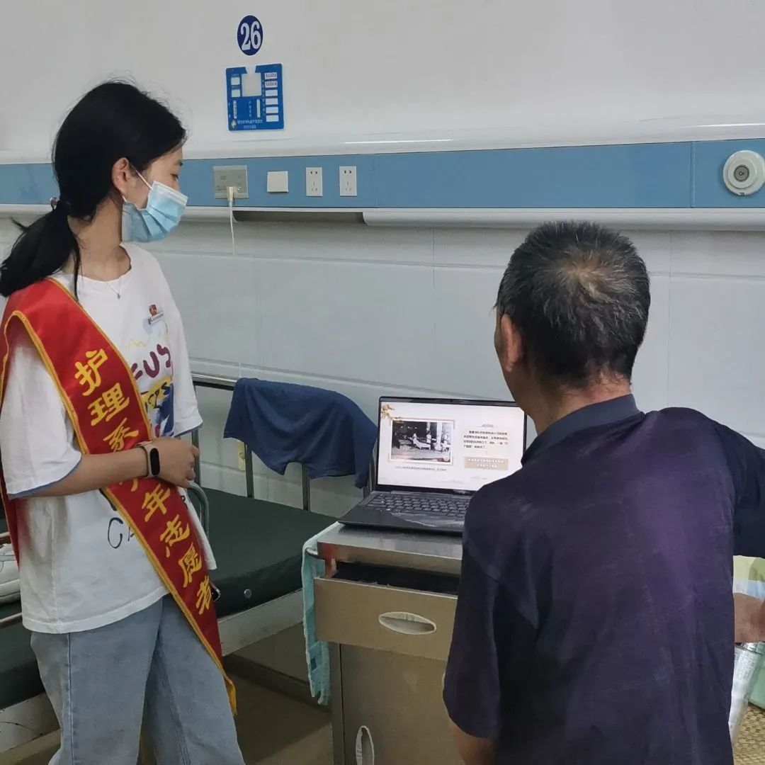 7月6日,护理学院梦飞天使志愿服务队正式启程,抵达南平市浦城县。次日,实践队通过宣讲疫情防控知识、测量体温等方式,助力浦城县中医院疫情防控工作,并于下午开展红色故事宣讲会。在现场,志愿者们通过演示文稿、手机视频等新模式与医院患者现场互动,宣讲党的光辉历程、中国共产党党员英雄事迹。