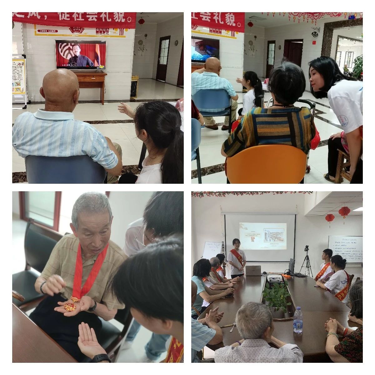 观看《觉醒年代》,追寻初心之源7月9日上午,梦飞天使志愿服务队来到浦城县万家福托老院,为这里的老人们带来了一场别开生面的文艺演出,并组织观看时下红色热剧《觉醒年代》,队员们为老人穿插讲解。郑婵瑶同学生动形象地就七七事变的爆发以及党的光辉历程为老人们宣讲。一位获得50年党龄纪念章的革命老兵情绪高涨,热情分享了他当年英勇抗战的事迹。