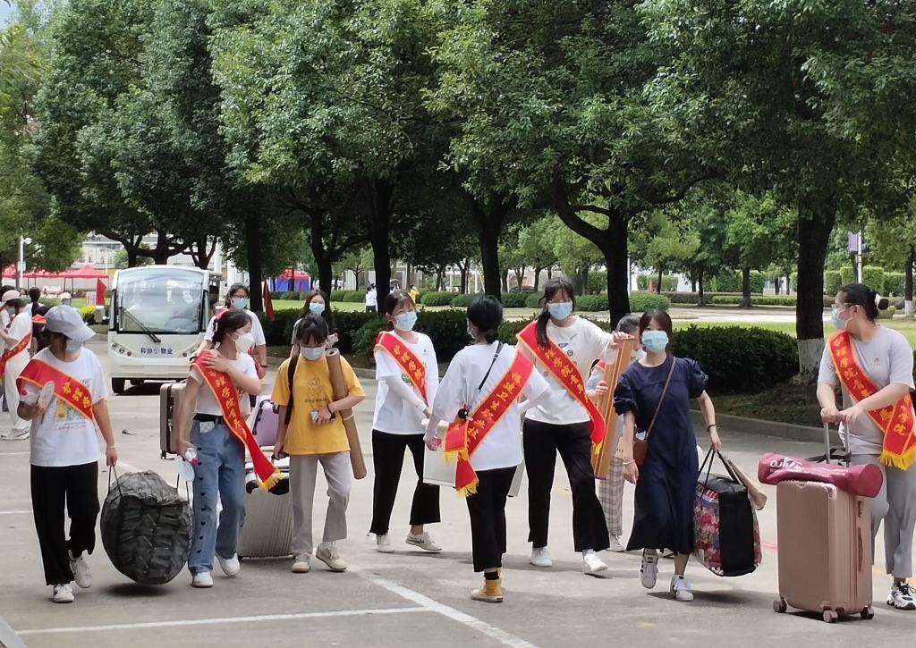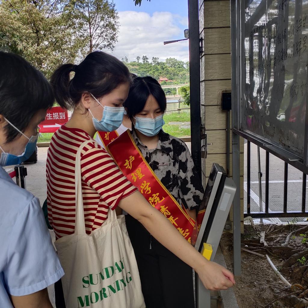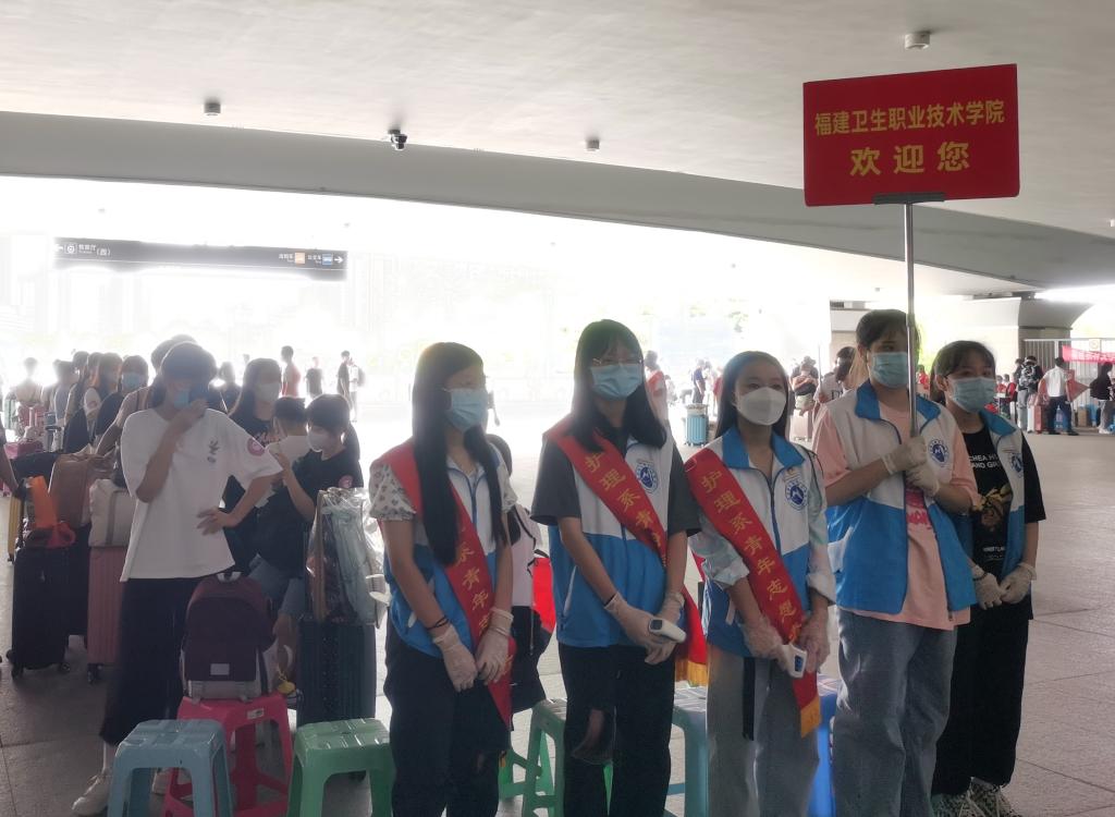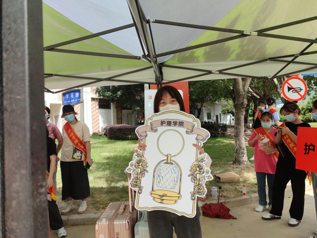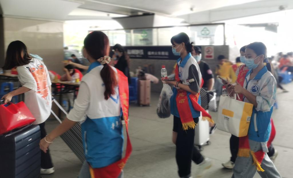 迎新当天,护理学院老师们和学生志愿者早早地在火车站开展接站服务,学院还安排了校内接驳车,帮助入校的新生搬运行李,让不能陪同的父母安心。