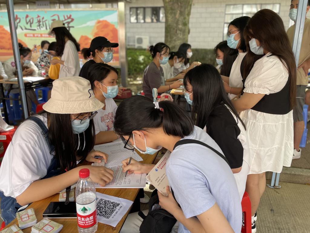 迎新帐篷下,学长学姐耐心讲解报到流程,耐心叮嘱填写好每一份资料,话语轻柔,让这场初识格外温暖。