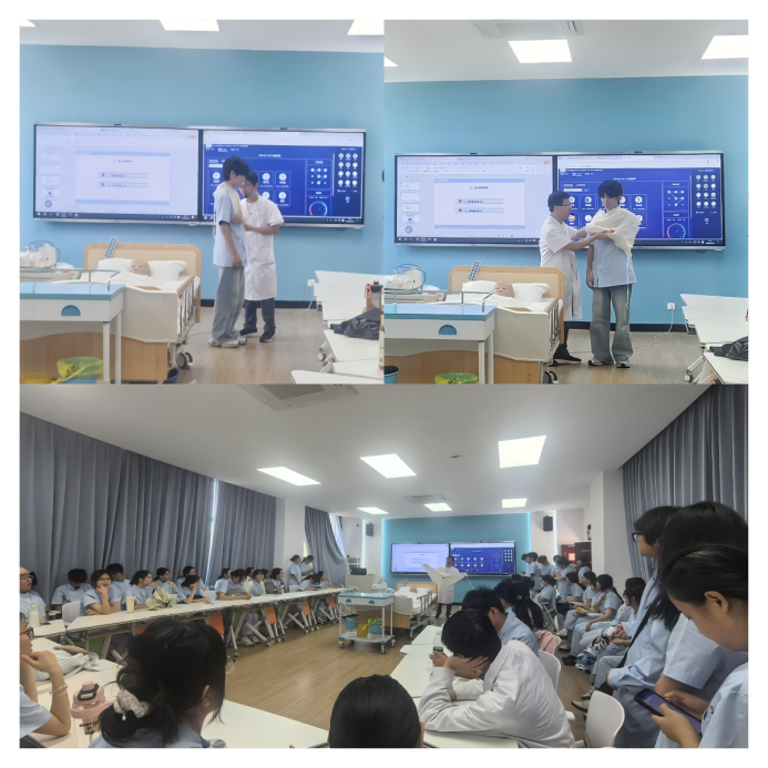 本次演练分为实训室内跌倒包扎应急处理演练和应急逃生演练(消防、地震)两个部分。实训室内跌倒包扎应急处理演练由老年保健与管理教研室许文魁老师现场讲授在实训室内发生跌倒后的应急处理流程,并现场进行模拟处置。