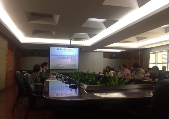 2017年11月1日,省教育厅曾能建副厅长率领发展规划处吴吓凤处长、财务处戴颖处长莅临我院调研,实地考察了学院实训教学楼等部分校园设施。院党委书记曾武祈、院长苏友新、党委副书记林建团、副院长黄开良、纪委书记李美华和各职能处室、教学系部负责人参加了座谈会。座谈会由曾武祈书记主持。