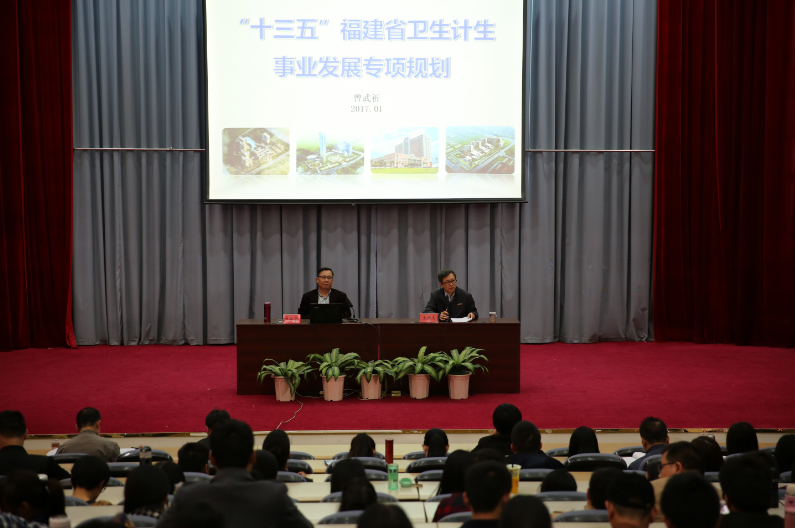 1月3日,学院党委书记曾武祈同志在学院学术厅举办福建省“十三五”卫生计生事业发展规划专题讲座,曾书记作为福建省“十三五”卫生计生事业发展规划起草组成员,对福建省“十三五”卫生计生事业发展规划进行解读。学院领导、全院教职工及部分学生代表参加,讲座由廖伟坚副院长主持。