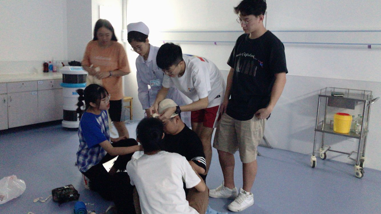 作为首次参赛的高校,我院发挥医学院校优势,克服时间紧、任务重等困难,在学工处的精心组织下,和临床系党政领导的精心组织和鼎力支持,挑选了临床系2017级临床医学专业的王继鉴等6名同学组成参赛队伍,由朱翔老师带队,外科学教研室刘景城老师、刘森锋老师及巫诗雨老师为指导老师。在暑期十天左右的强化训练中,同学们吃苦耐劳,上午实习下午训练,在指导老师的全程陪护下,完成了心肺复苏、包扎、搬运和固定等项目的训练。为更贴近战场医疗救护,指导老师组织同学们到医院部队现场观摩学习,、还通过并向部队军医请教专业问题等形式,让同学们的训练更具针对性和明确性。正是老师和同学们的辛苦付出,无私奉献,才能在赛场上上演了一幕幕为荣誉而战的精彩瞬间,展现了我院学子英姿飒爽的风采。