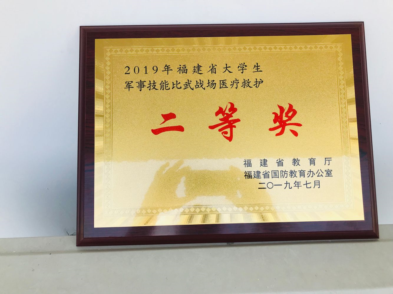 7月23日至25日,由省教育厅、省国防教育办公室联合主办的“福建省大学生军事技能比武活动”在福建中医药大学举行。我院首次派出选手参赛,荣获战场医疗救护项目二等奖!