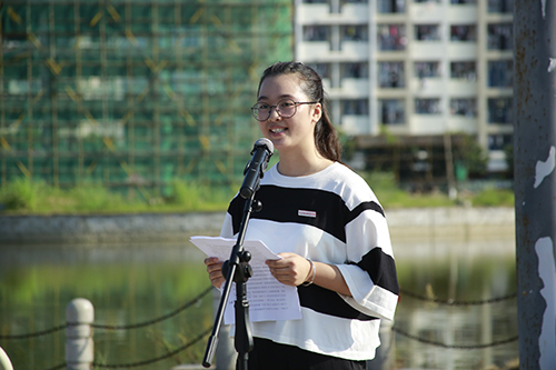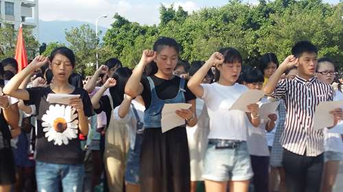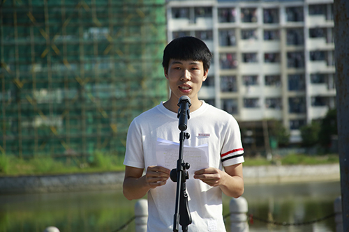 管理系杨笑老师作为教师代表首先发言,她殷切希望同学们要做好吃“苦”的准备,做一个“主动”的人,做一个有创新精神的人,做一个自信的人,在福卫的大家庭中,尽情放飞自我,追逐梦想。作为老生代表,学生会主席江思思在发言中分享了暑期赴台湾参加“海峡两岸红十字青少年人道之旅”的经历,并对学弟学妹们表达深深祝福。新生代表护理系连尧旺同学发言,表达对大学学习生活的期待和向往。其后,学生工作处董东老师带领2568名新生高举右手,庄严宣誓,将医学生誓词铭记于心。