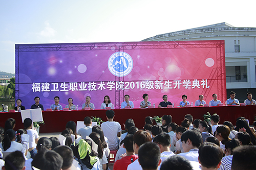 9月6日上午,学院在的音乐广场隆重举行2016级新生开学典礼。学院党委书记林春明、院长郭素华、副院长廖伟坚、黄开良、纪委书记李美华以及有关职能处室负责人、各系部主任、党总支书记、全体新生辅导员出席典礼,典礼由副院长廖伟坚主持。