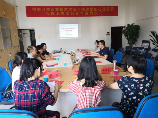 为进一步加强学院心理健康教育的育人功能,强化精神卫生专业服务资源的引进,共同促进学生精神卫生与心理健康,6月27日下午,我院心理健康教育中心与福能心理医院在管理系会议室举行心理卫生服务合作签约仪式。学院党委副书记李美华、福能集团总医院副院长李斌、福能心理医院副总经理王庆华、大客户部经理江秋玲、运营部专员张敏捷、学院管理系党总支书记兼心理健康教育中心主任艾松军、管理系主任兼心理健康教育中心副主任庄海林、心理健康教育中心副主任田伟翠、心理健康教育中心成员及各系心理辅导员参加会议。