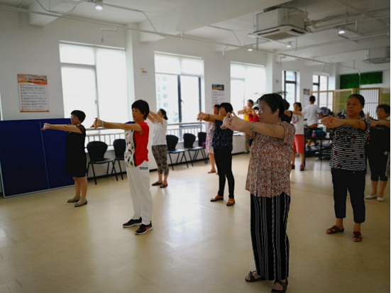 厦门筼筜街道养老照料中心老人们进行肢体关节康复操锻炼