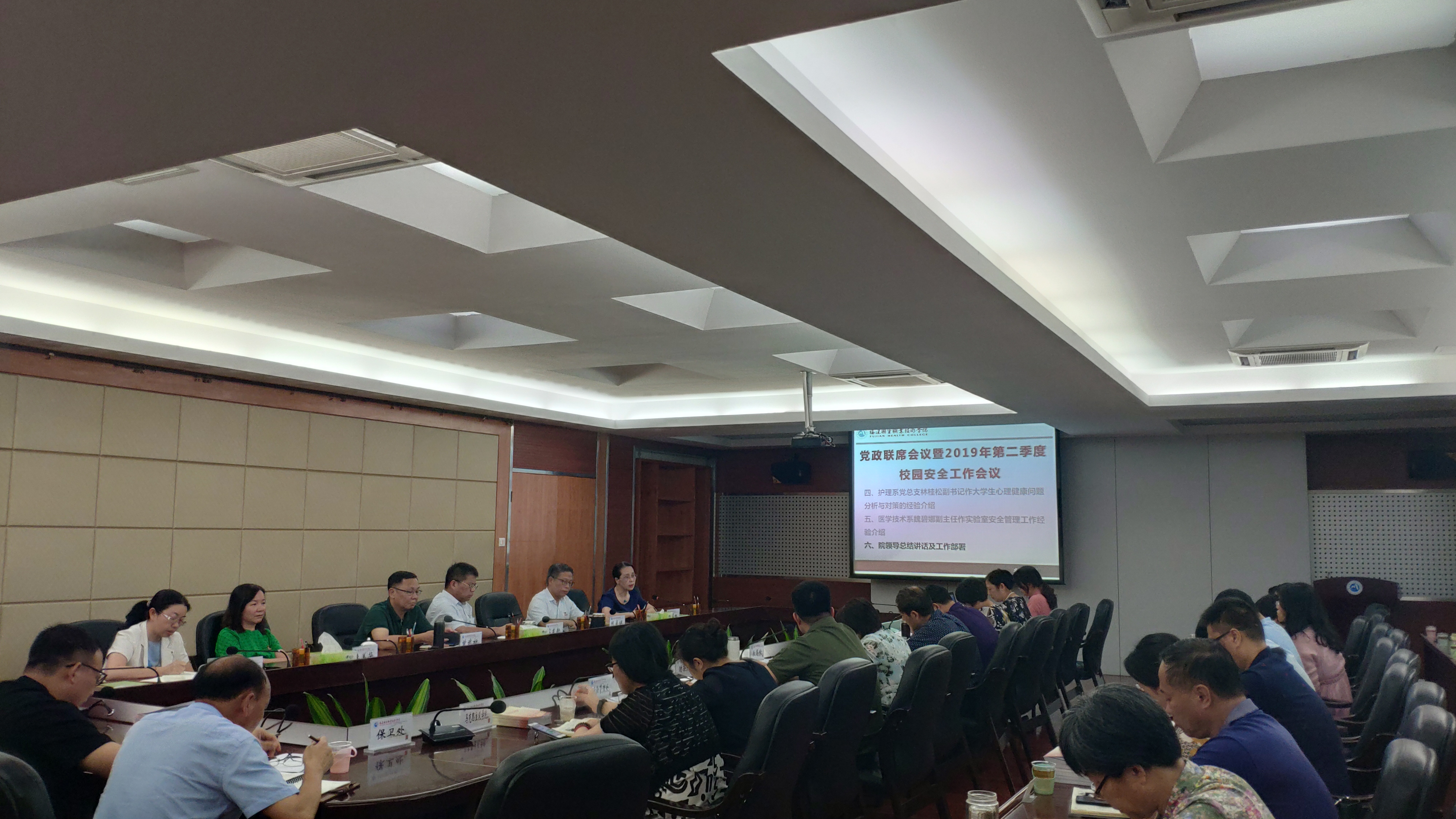 7月3日下午,学院在行政楼四楼会议室召开了2019年第二季度校园安全工作会议。会议由学院党委曾武祈书记主持,学院党委委员、全体中层干部参加会议。