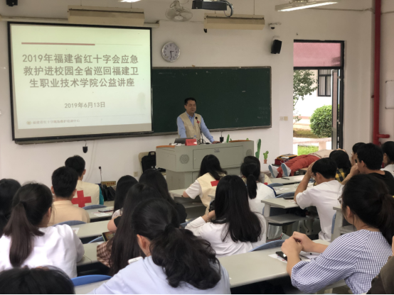 为进一步推动学院红十字急救培训工作,普及应急救护知识,提高学生的自救互救意识和本领,推进红十字急救进班级、进宿舍,6月13日下午,我院红十字学生分会特邀省红十字会现场救护培训中心资深讲师郑明华老师为我校红十字志愿者和18级各班红十字急救员开展了一场应急救护培训讲座。