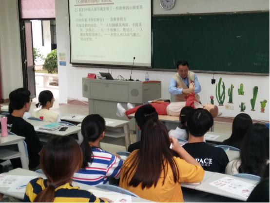 讲座中,郑明华老师与现场学生积极互动对答,精彩的演讲与亲身示范把急救知识与技能有效的传递给在场聆听的每个同学,同学们受益匪浅,不时就送上阵阵热烈的掌声,现场气氛十分浓烈。