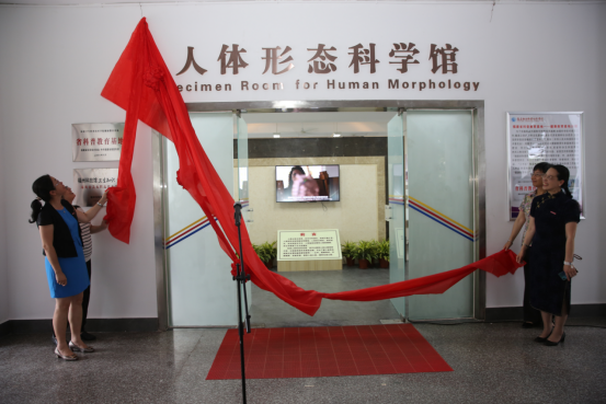 仪式上,黄铭珊副院长、郑翠红副院长、倪峰处长、叶菁主任共同为人体形态科学馆开馆揭牌。