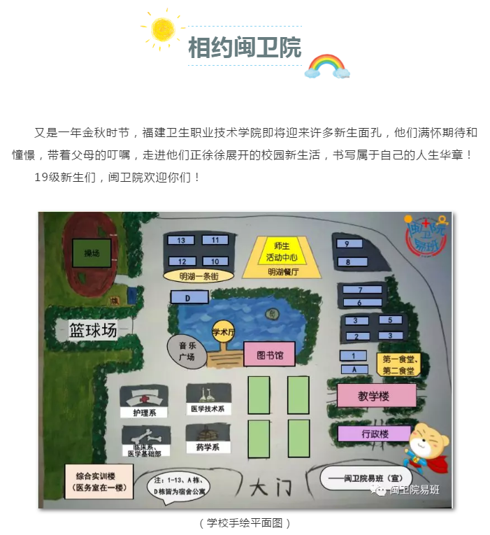 相信闽卫院是你们新的起点,也相信你们会秉承着“业精德诚”的校训,在闽卫院里挥洒汗水,放飞梦想,踏过新起点,迈向新征程,追逐新目标,收获新成就。