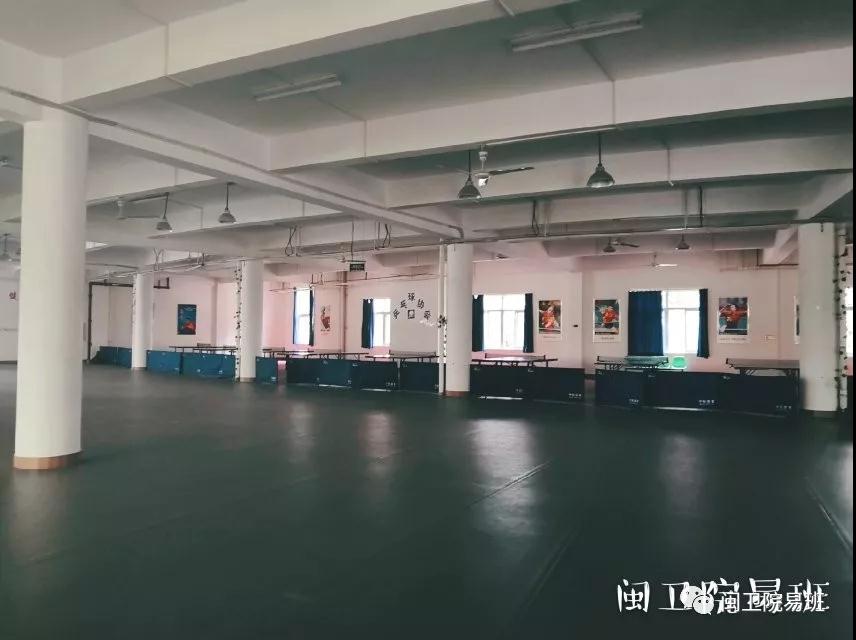 明湖二楼有很多张乒乓球桌、跑步机以及各种健身器材,是闽卫院学生课余时间健身的好地方。