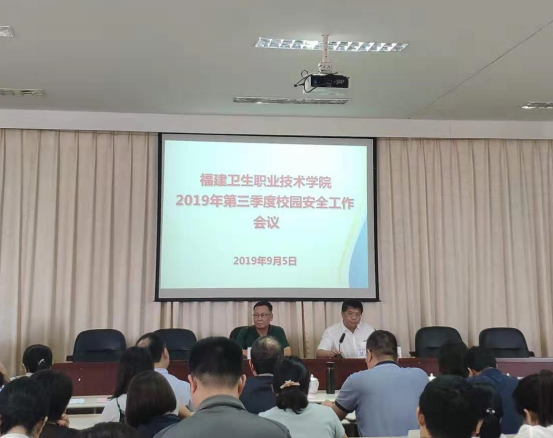 为扎实推进开学初学院各项安全工作,积极有效地做好新一轮“平安校园”迎评创建工作。2019年9月5日上午10时,学院在行政楼六楼会议室召开了2019年第三季度校园安全工作会议。会议由学院院长苏友新主持,学院党委委员、全体中层干部、各系部实训中心主任、全体辅导员(专职)等参加了此次会议。