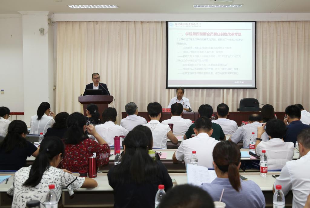 大会听取了人事处负责人作关于《学院第四聘期全员聘任实施意见》《学院教师等系列专业技术职务聘任实施方案》和《学院绩效工资分配实施方案》的修订说明。代表们对上述3个文件进行了认真审议。代表们认为,学院第四聘期全员聘任3个文件,对于深化人事分配制度改革,完善学院管理体制机制,提高教育教学质量具有积极意义。大会采取无记名投票表决的方式通过了《学院第四聘期全员聘任实施意见》《学院教师等系列专业技术职务聘任实施方案》和《学院绩效工资分配实施方案》。