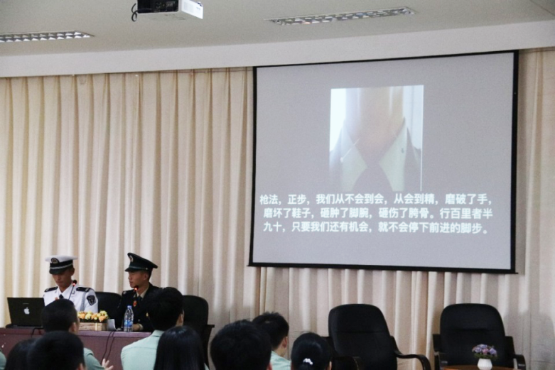 陈东生、涂百仲两位老师作为预备役部队方队中的一员,在庆祝新中国成立70周年阅兵仪式中接受了党和人民的检阅。两位老师同师生讲述了在参加阅兵典礼过程中的各种酸甜苦辣。阅兵村极其严格的集训,破了脚茧、肿了脚踝和胯骨、天安门前的96米要踢出128步,用时1分04秒的高标准和超40秒不眨眼,无不震撼了在场师生,掌声阵阵。