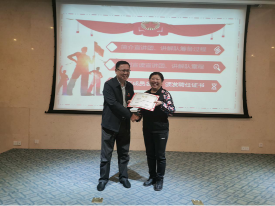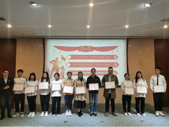 会议伊始,读书社社长雷榕芳同学向大家汇报了讲解队的筹备过程,中国船政文化博物馆、林则徐纪念馆、马江海战纪念馆为我校校外思政教育实践基地,依托三馆分别成立了三支讲解队;随后三馆讲解队大队长林灵同学为大家宣读了三馆讲解队的章程,详细介绍了讲解队的基本制度、组织制度、会议制度、学习制度、考勤制度及奖惩制度。随后,团委书记黄曦老师分别为三馆讲解队的成员颁发了聘任证书。