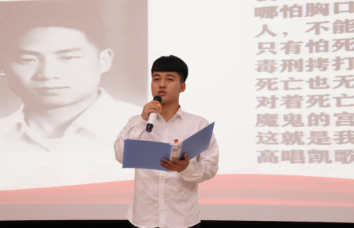 “一夜风云变,上海大屠杀。尔琢拔刀起,血誓效讨伐。革命不成功,此生不剃须。” 主播魏雨馨演绎着《王尔琢的“托孤书”》,触动台下观众的心灵,让同学们感受到一个有血有肉、至情至性的共产党人形象。