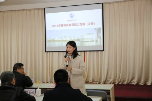 学生工作处十分重视辅导员素质能力的培训和提升,为了做好2019年福建省辅导员素质能力竞赛的准备,11月份启动校级比赛以来,赛前聘请福建农林大学曾获得全国辅导员大赛三等奖、省级比赛一等奖的优秀辅导员黄鹏为我校辅导员开展业务能力提升和大赛经验分享讲座。校级比赛历时一个月,来自我校5个系部的42名辅导员参加比赛。经过初赛的笔试、自我展示、案例分析、谈心谈话等环节选拔,共有12名辅导员进入决赛。