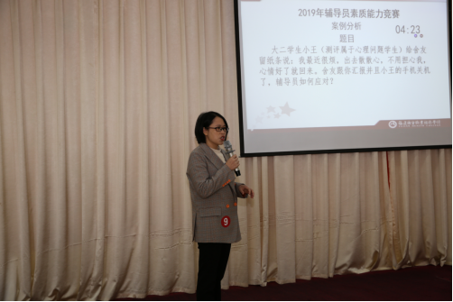 决赛分为前期网文写作和现场案例分析、理论宣讲两个环节,案例分析围绕学生恋爱问题、寝室人际关系、学生网络舆情、学生心理问题等学生群体中经常出现的问题,考察辅导员的判断问题、分析问题和解决问题的能力。理论宣讲主题围绕新时代公民道德建设实施纲要、辅导员的初心和使命、红色文化融入大学生思想政治教育等主题展开,主要考察辅导员的理论宣传阐释能力,注重考察政治性、思想性、理论性、政策性、导向性。选手们准备充分、沉稳从容,出色的表现展现了我校辅导员风采。