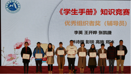 晚会以学生工作表彰大会拉开帷幕,2019年中,我校一批学生和辅导员老师在国家奖学金、国家励志奖学金、2019级新生《学生手册》知识竞赛等各项学生工作中表现突出,获得佳绩,校领导陈贞健、黄铭珊和相关部门领导为他们一一颁奖。
