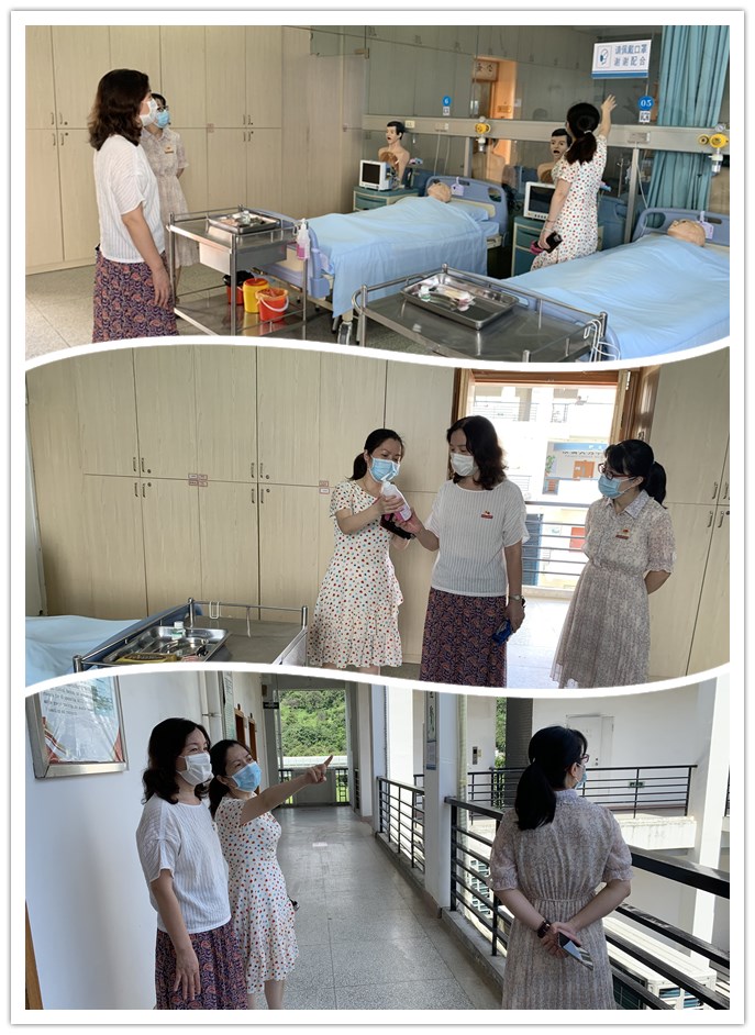 李美华仔细查看了护理系二楼示教室和四楼实训室的实训设备和物品准备情况,并查看疫情防控措施的落实情况,对学生返校复学工作流程、重点环节、关键部位和防控措施等提出了具体指导意见。