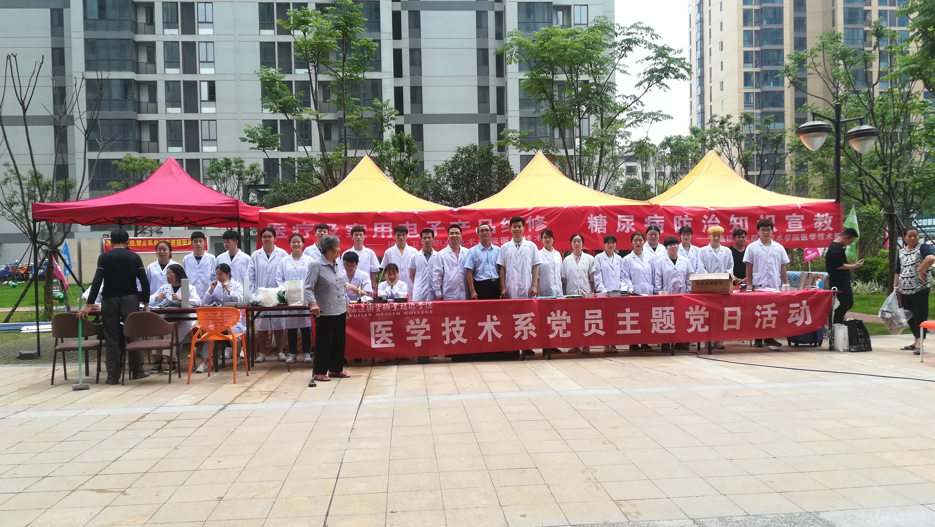 为积极响应2019年全国职业教育活动周的号召,充分展示我院办学特色和成果,发挥我院医学职业技能优势,推动“两学一做”学习教育活动常态化制度化,充分发挥基层党组织战斗堡垒作用和党员的先锋模范作用,以“迎祖国七十华诞 展职教时代风采”为主题,医学技术系党总支组织25位专业教师(其中,教师党员19名)带领48名学生(其中,学生入党积极分子39名)于2019年5月16日前往医技系共建合作单位福州市晋安区茶园街道所属的洋下东社区洋下花园小区和东浦社区开展6项职教活动。