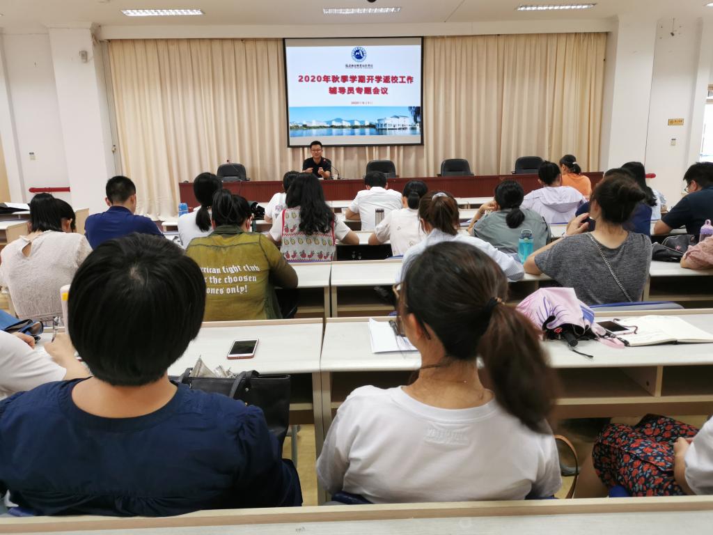 为切实做好2020年秋季学期学生开学返校各项工作,9月1日下午,学工处组织全体专兼职辅导员在行政楼六楼会议室召开2020年秋季学期学生开学返校辅导员专题会议,部署学期开学工作。