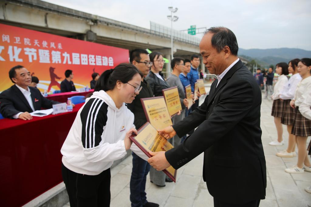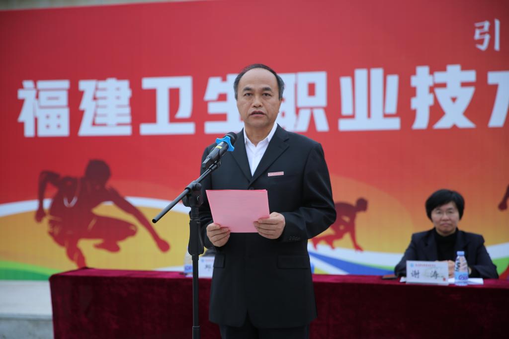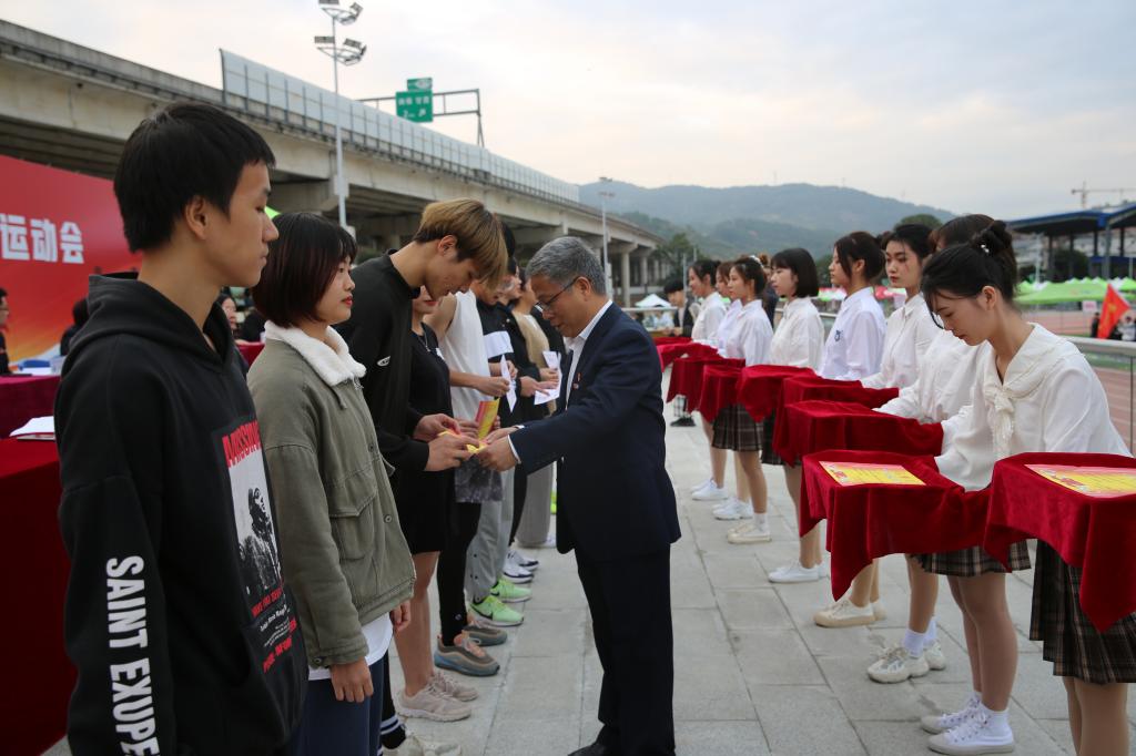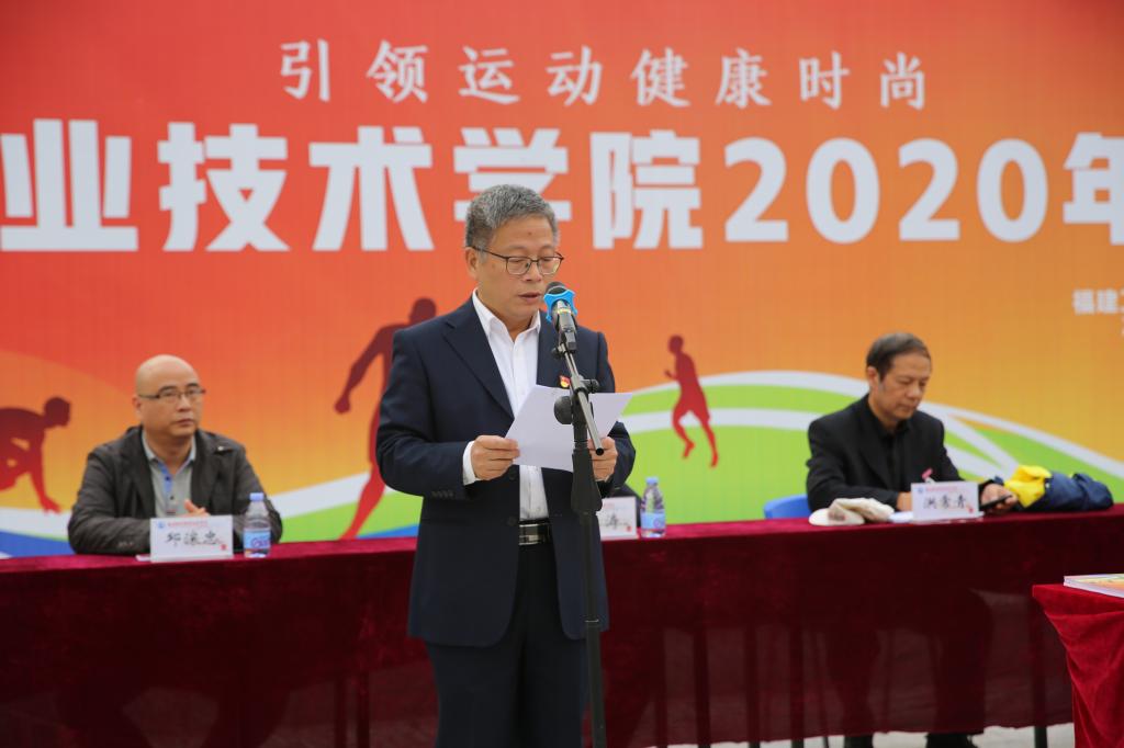 许能锋致闭幕词,他提到,这届体育文化节、田径运动会充分展示了我校师生积极进取、奋发向上的精神风貌,展示了我校体育健儿自强不息、团结协作的时代风采。希望全校师生勠力同心、群策群力,以更加强健的体魄、更加旺盛的精力、更加顽强的意志,致力“健康福建”、服务“健康中国”,为我校高水平职业院校和专业建设,为我校科学发展、跨越发展、高质量发展,持续贡献力量!
