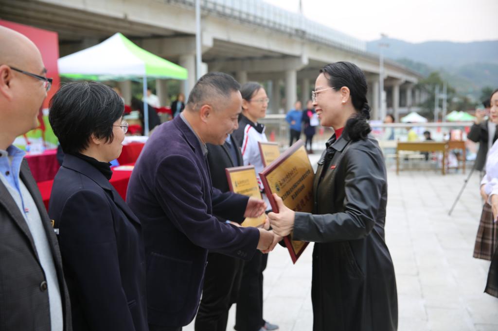 校领导依次为获奖单位和个人颁奖并合影留念。