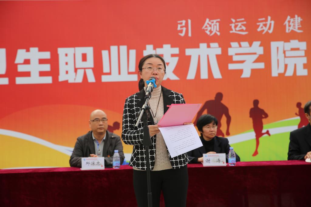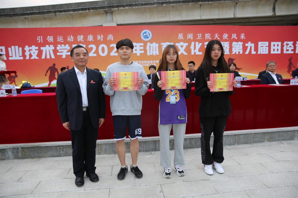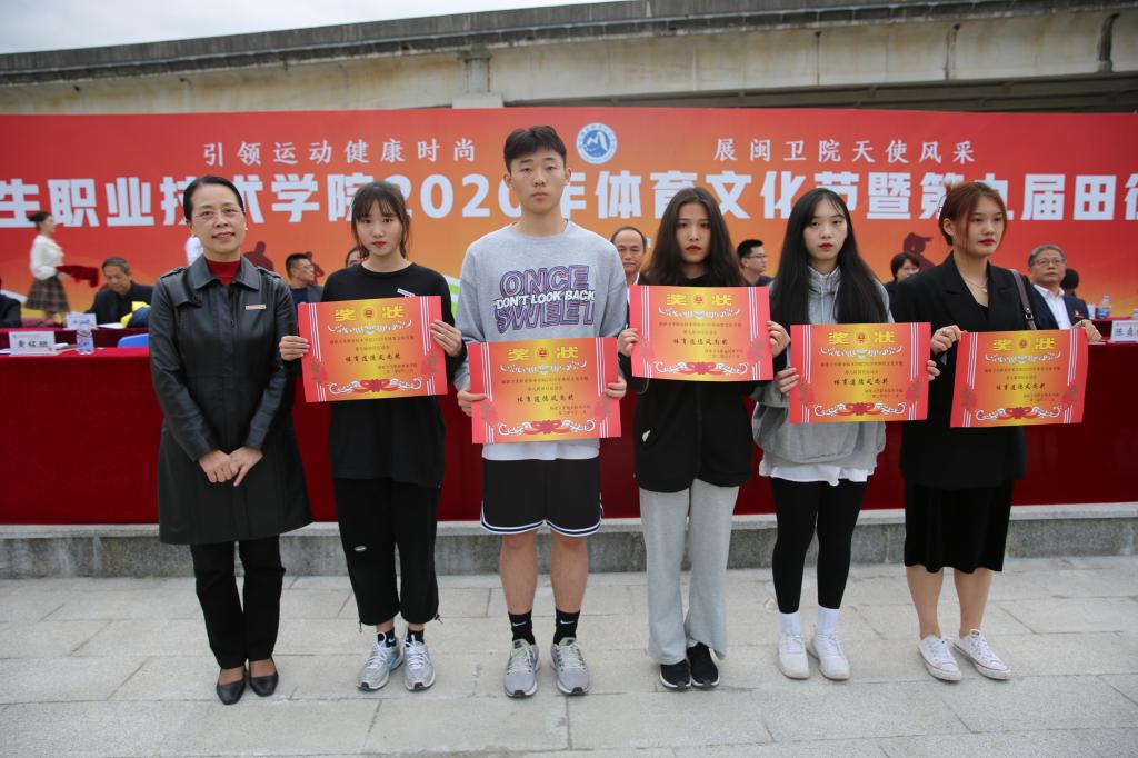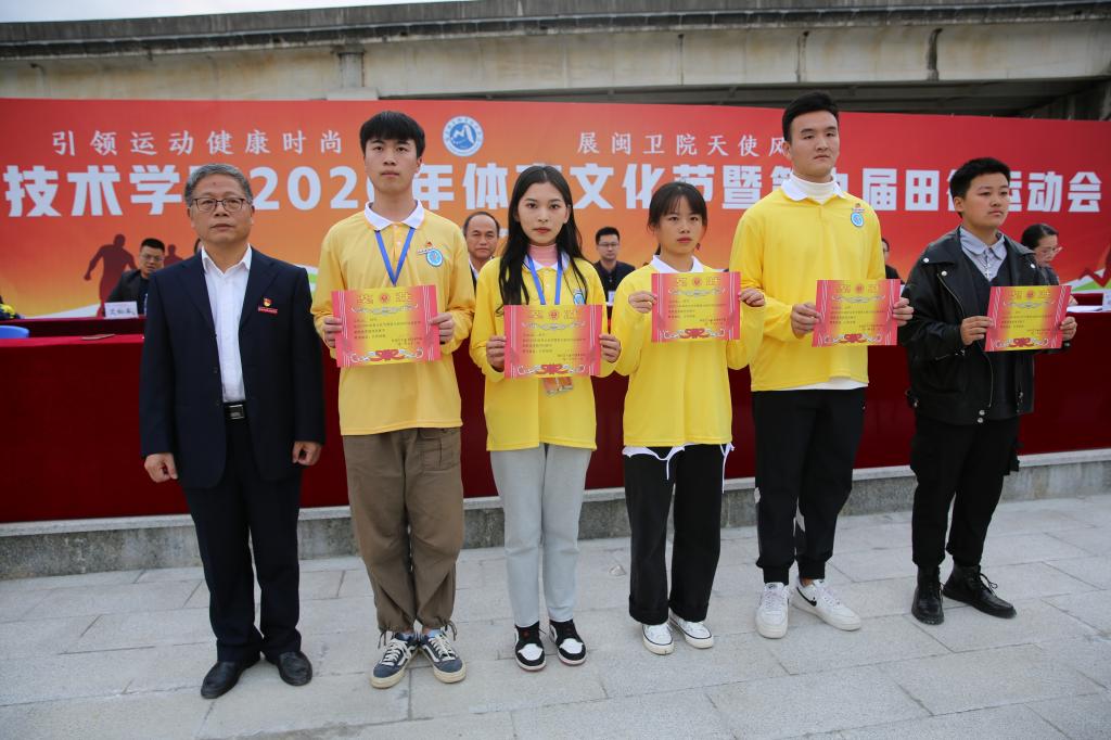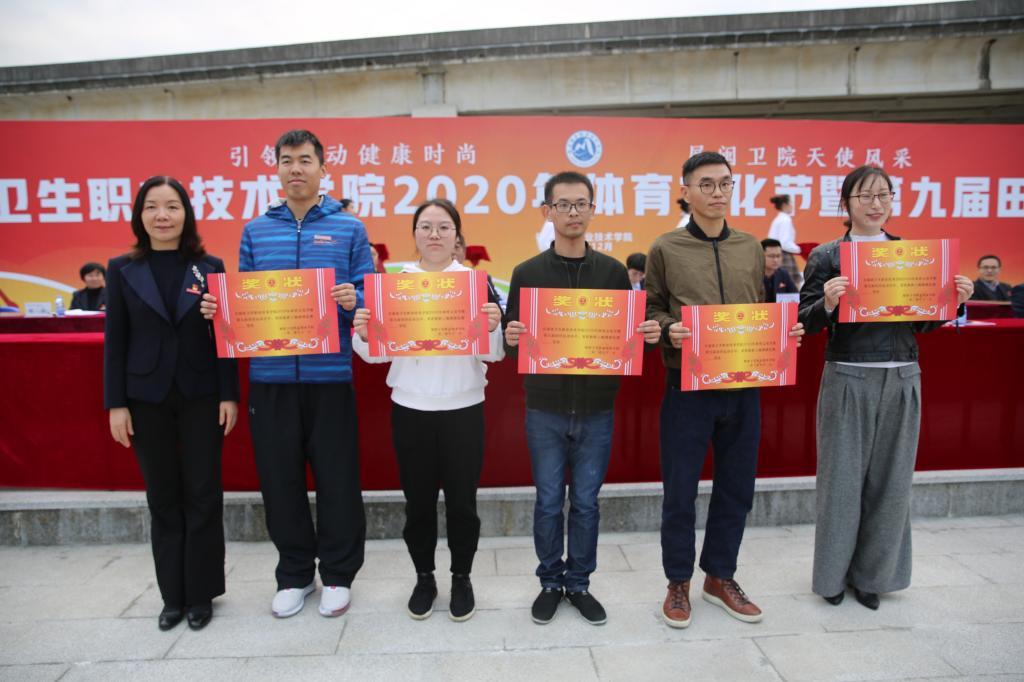 熟悉激昂的《运动员进行曲》中,国旗、校旗护旗队和各班级代表队在田径场就位。陈贞健宣读学生优秀教练员、裁判员,系部组织奖获奖及班级体育道德风尚奖等名单。郑翠红宣读田径运动会学生班级团体总分、班级团体名次,学生系部团体总分、系部团体名次,学生组20*200米优胜奖,竞技跳绳十人8字绕奖,第九套广播体操奖,田径运动会教职工团体总分、团体名次,趣味运动项目奖,体育文化节组织奖和天使风采奖等。